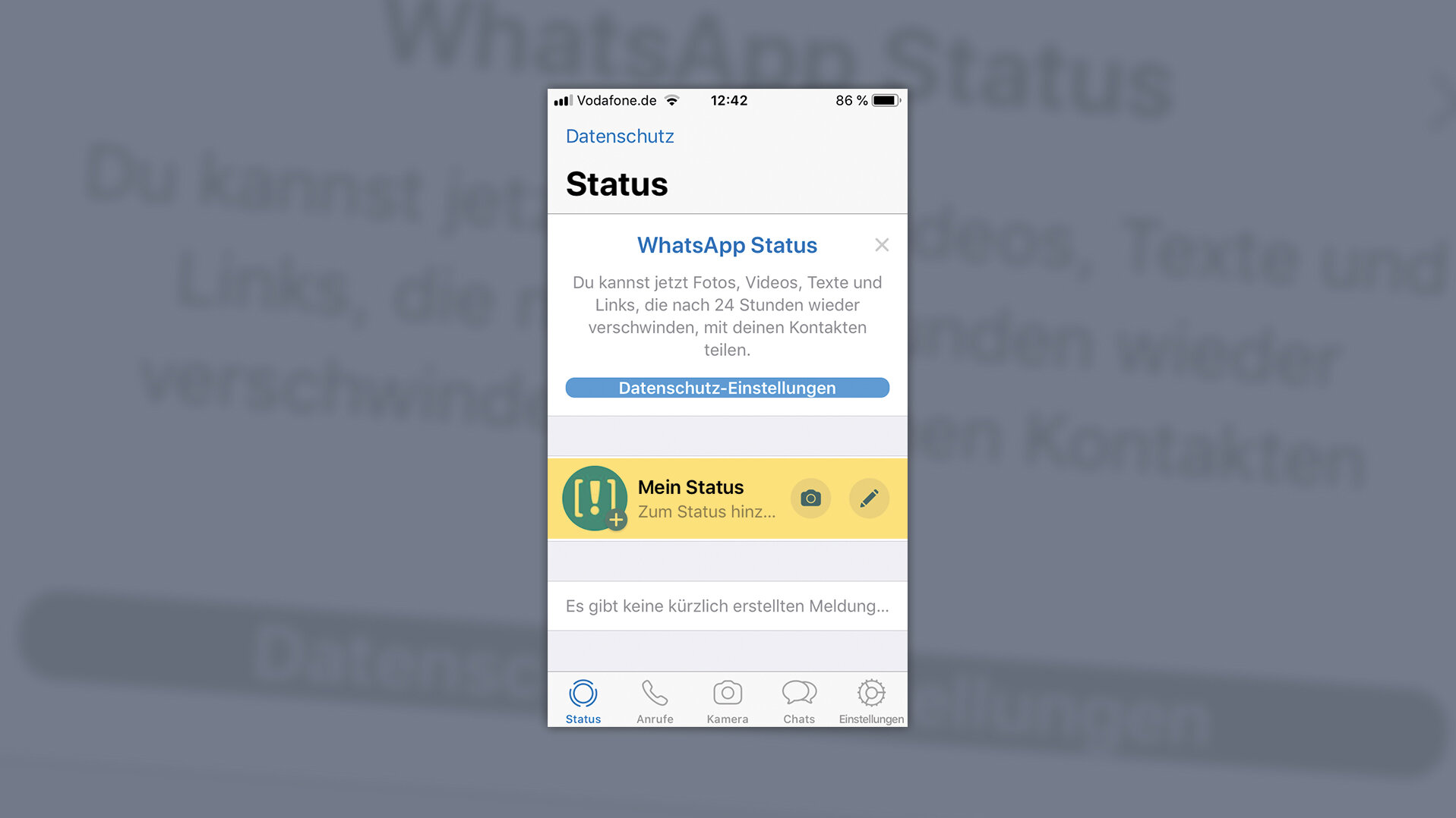 Im nächsten Schritt können Sie optional etwas zu ihrem Status hinzufügen.