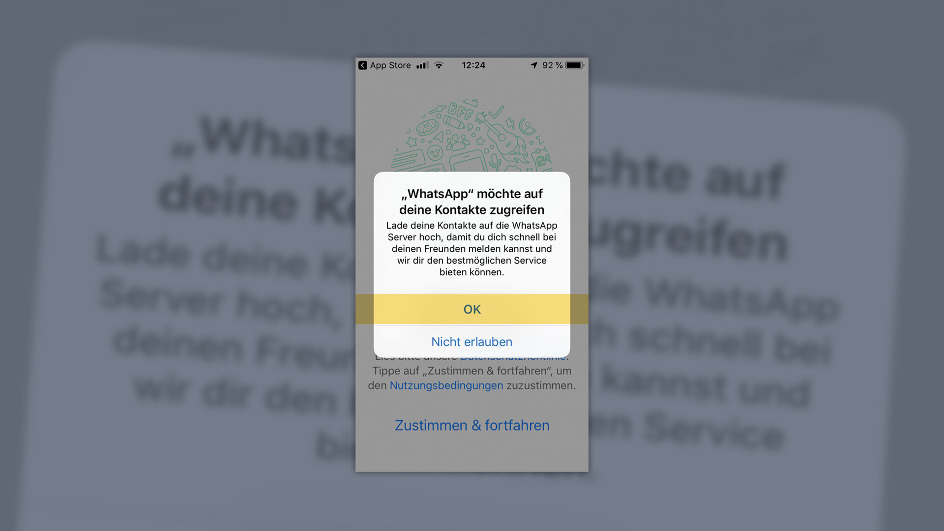 Sobald Sie WhatsApp aus dem App Store oder Play Store heruntergeladen und geöffnet haben, fragt die App, ob Sie auf ihre Kontakte zugreifen darf. Erlauben Sie dies, werden alle ihre Kontakte in WhatsApp übertragen.